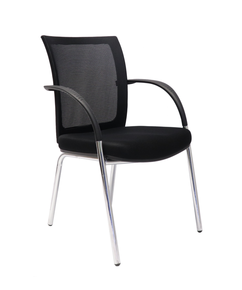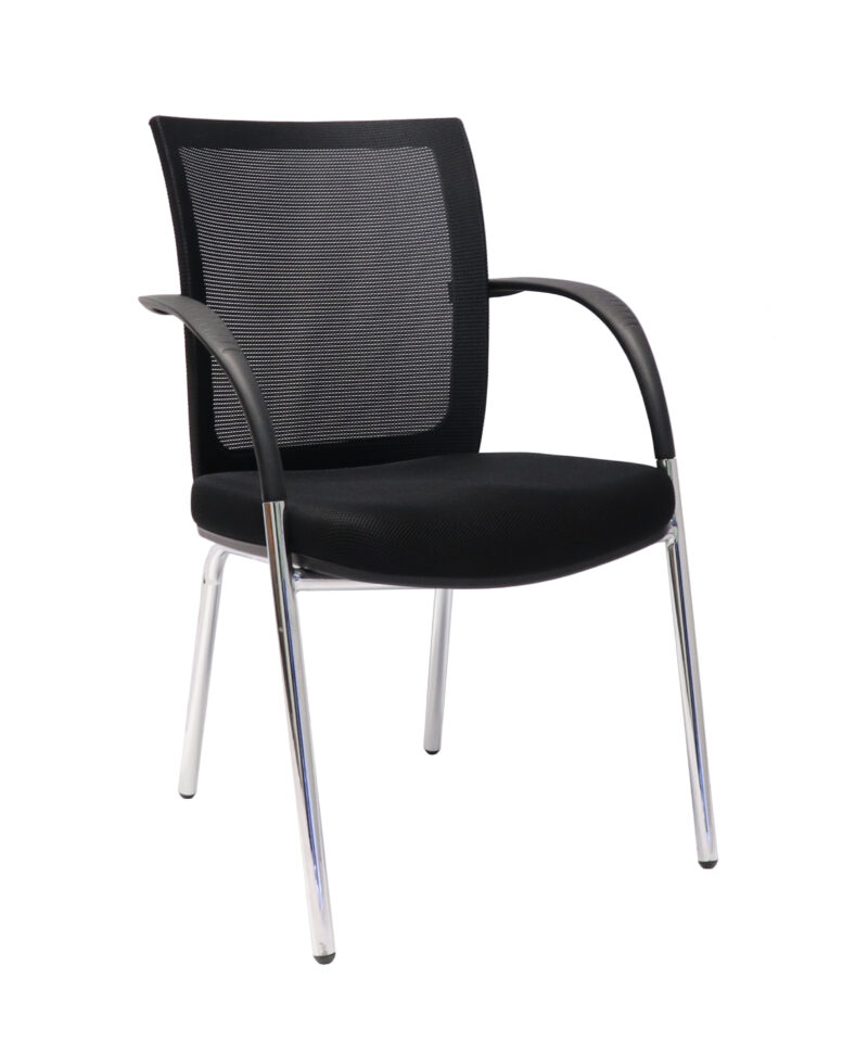 Ideal for a visitor or meeting chair. Robust design with 4 chrome legs and arms, good size mesh back and fabric seat. Backed by a 5 year warranty.