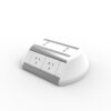 Stylish design solution for on desk power with outlets that feature a push-fit shutter design to prevent dust & grime.