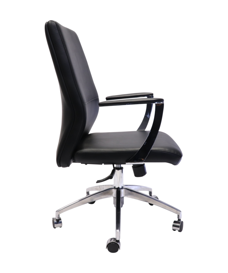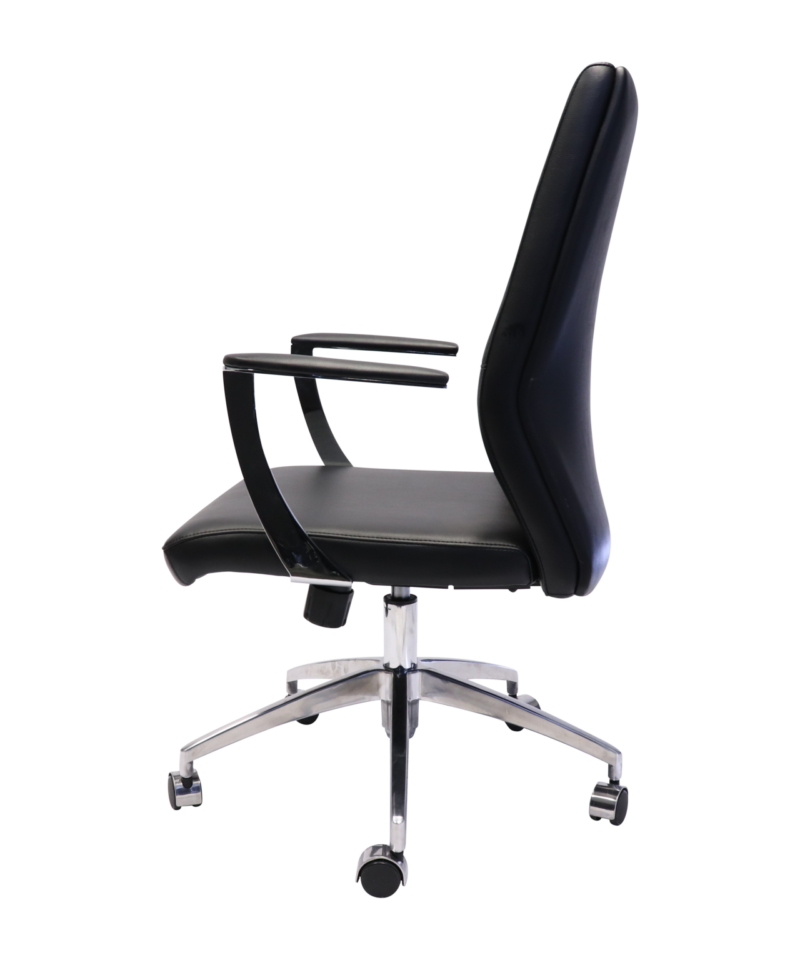 The Rapidline CL3000M is a slimline executive medium back chair which suits any office space. Featuring a 3 position lock mechanism to adjust seating angle, upholstered arm pads, and polished aluminium arms and base.