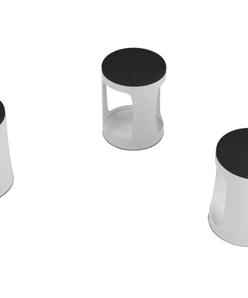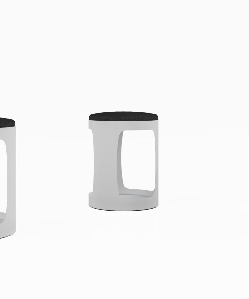 - Black Fabric Seat Ottoman with White Powdercoated Steel Base