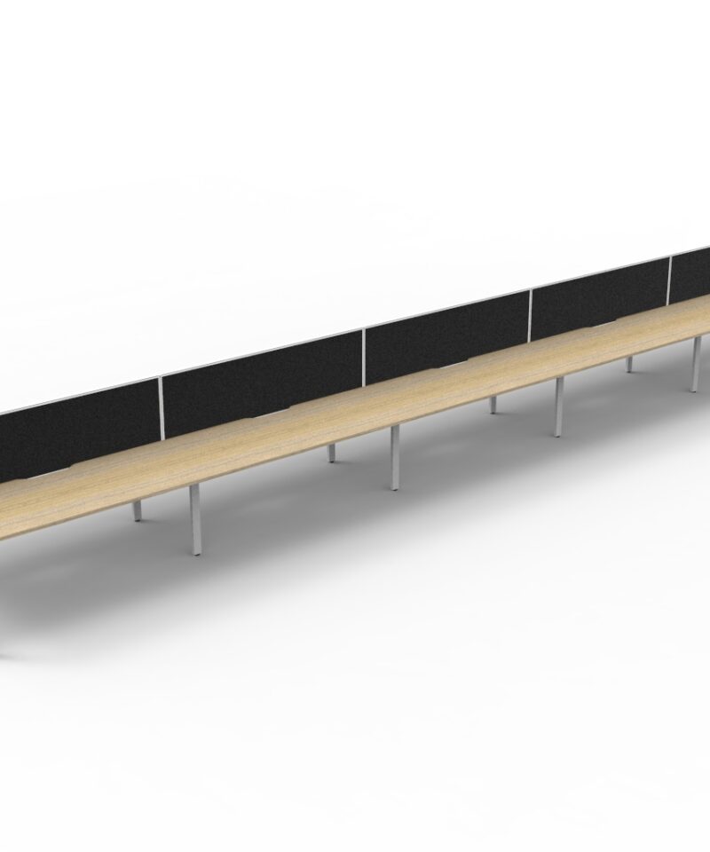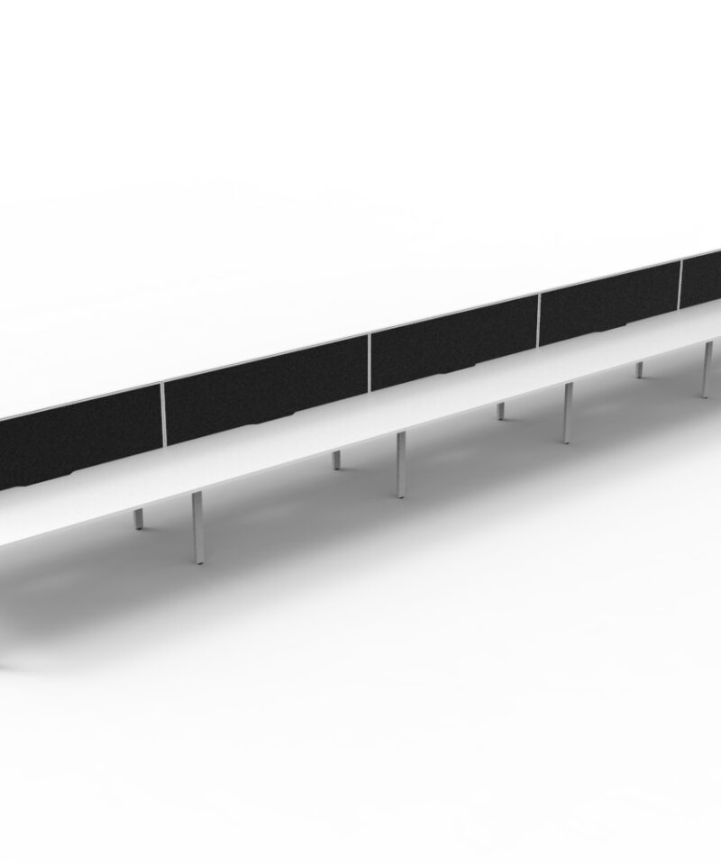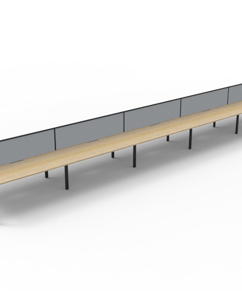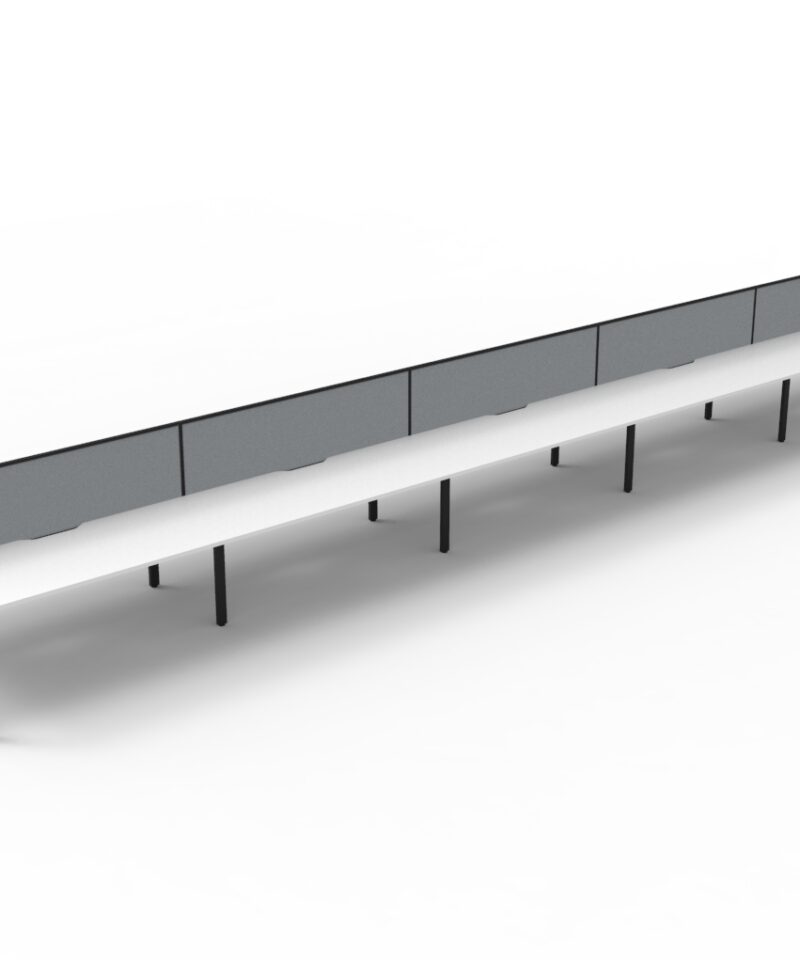 Maximise space and create an efficient working environment with Deluxe Rapid Infinity. 750mm deep Enviroboard tops, with scallop for cable access, and a recessed leg to create full leg access in long runs of workstations.