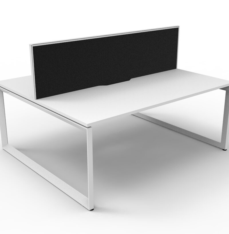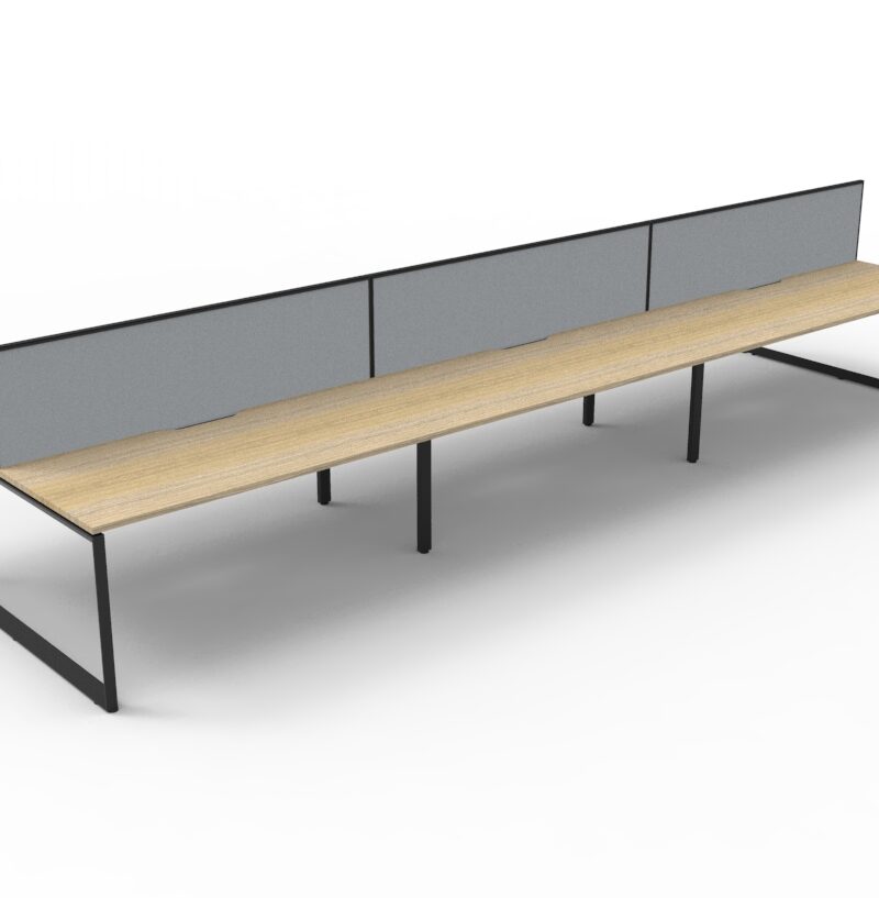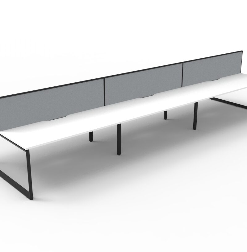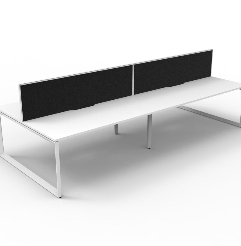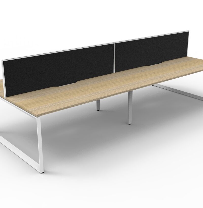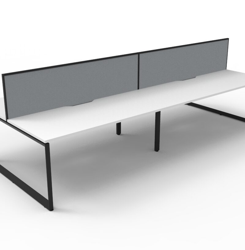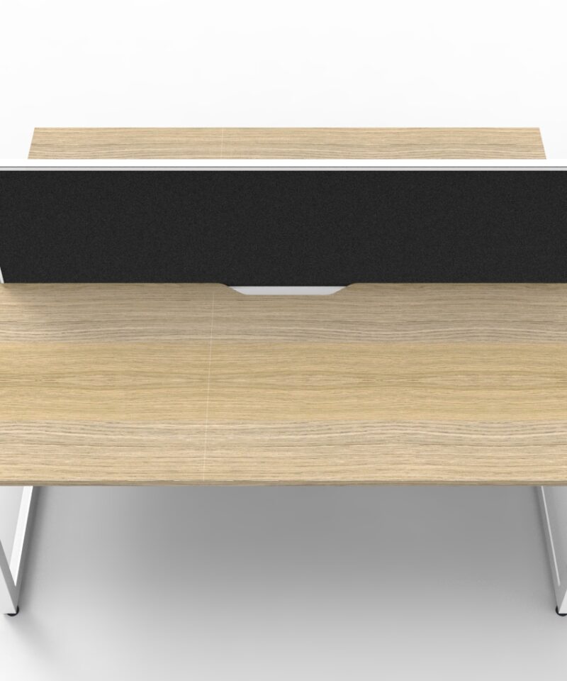 The bevelled edge loop leg finishes each workstation run with a premium look, and the matching dividing screen adds privacy and noise reduction to each workstation.