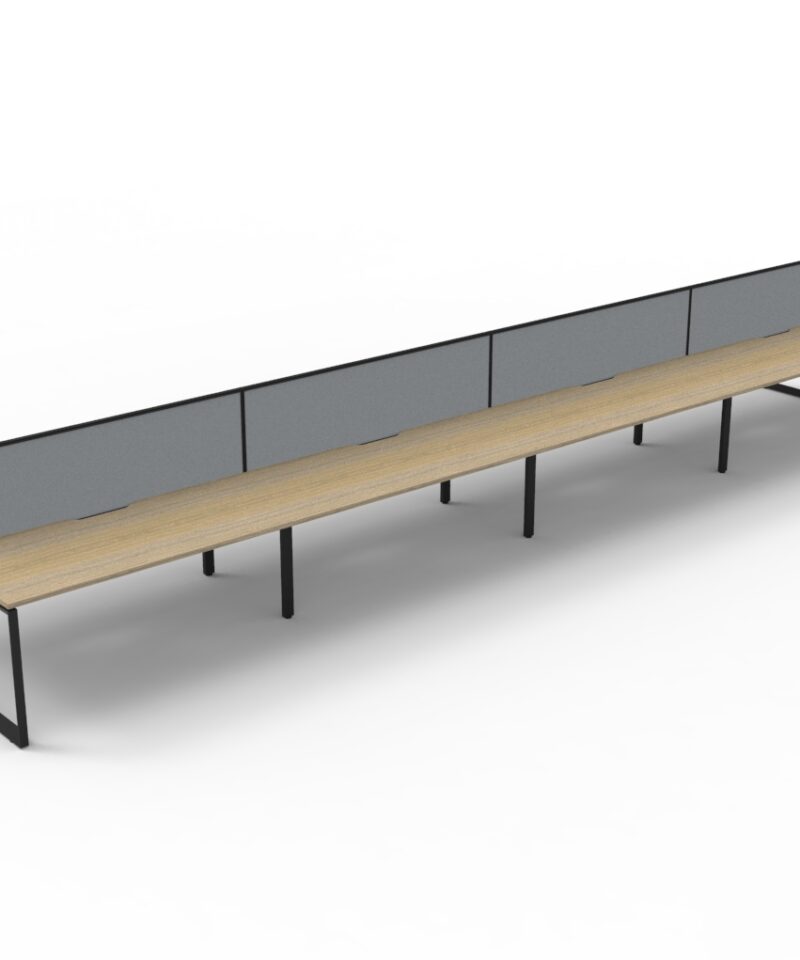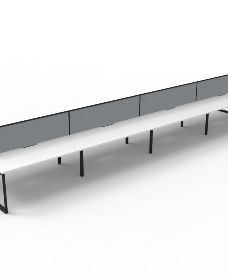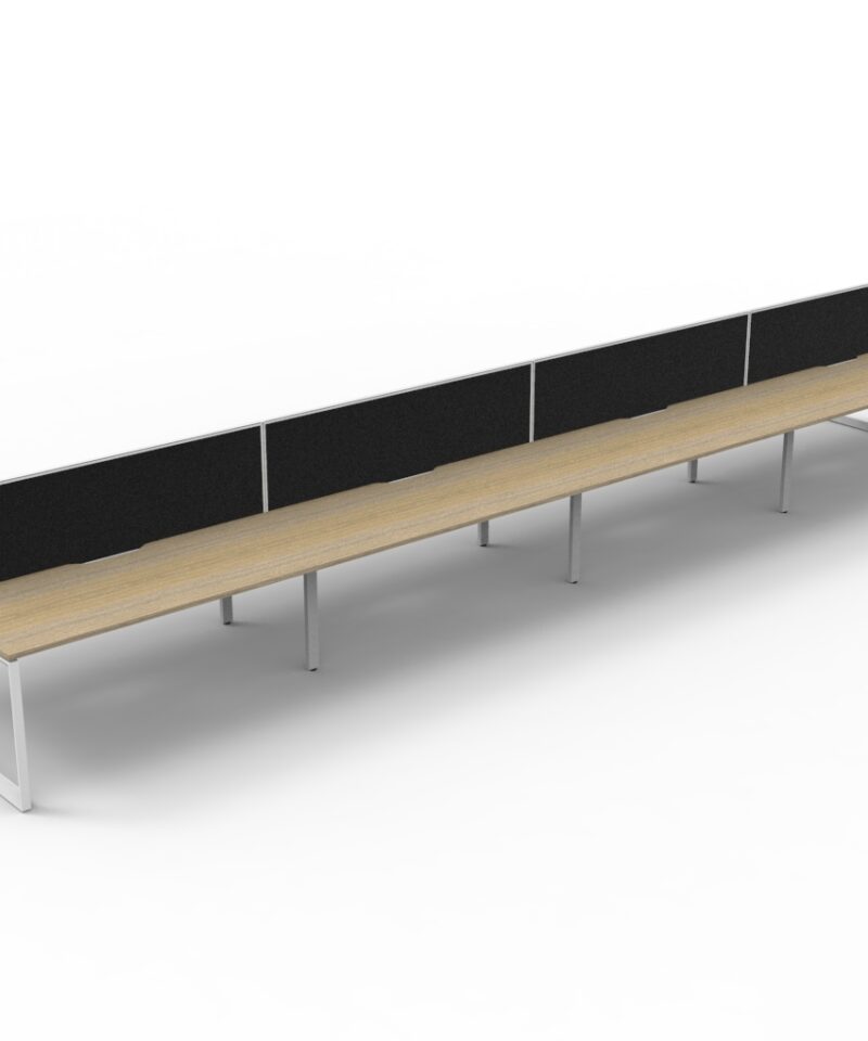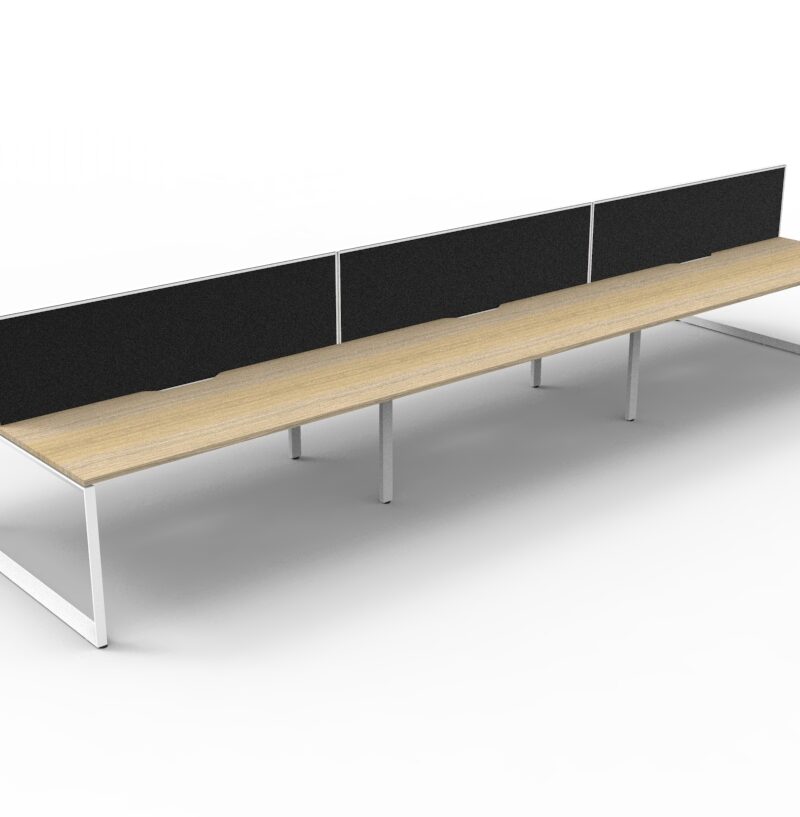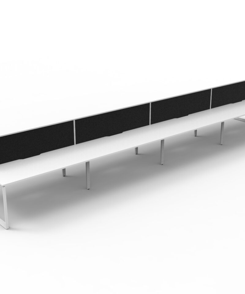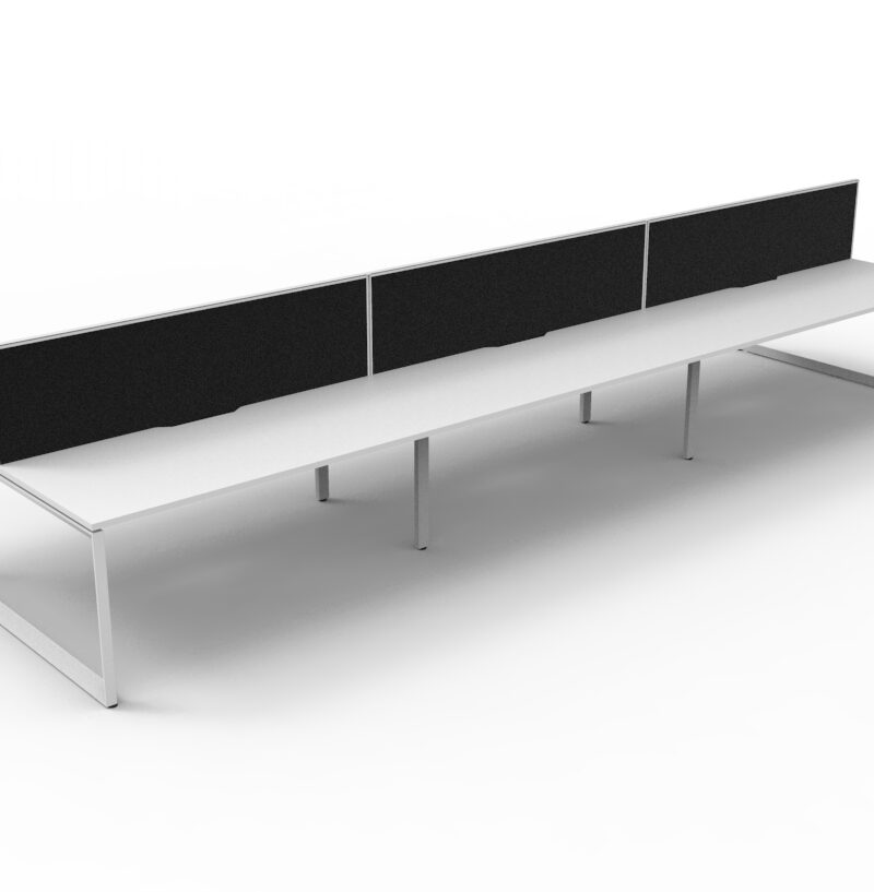The bevelled edge loop leg finishes each workstation run with a premium look, and the matching dividing screen adds privacy and noise reduction to each workstation.