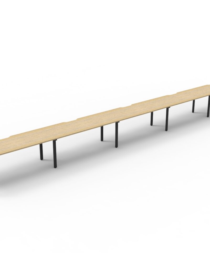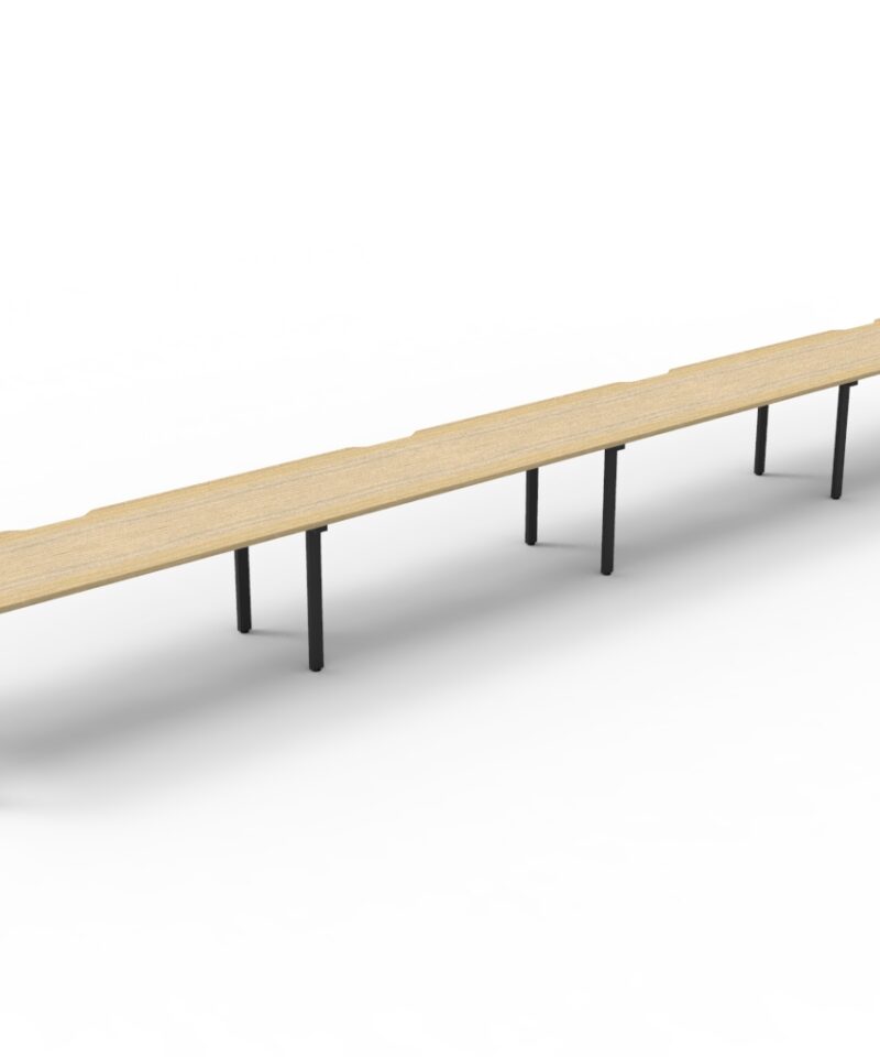 Maximise space and create an efficient working environment with Deluxe Rapid Infinity. 750mm deep enviroboard tops, with scallop for cable access, and a recessed leg to create full leg access in long runs of workstations.