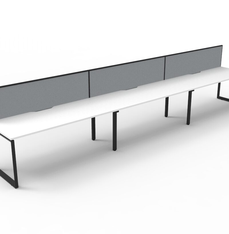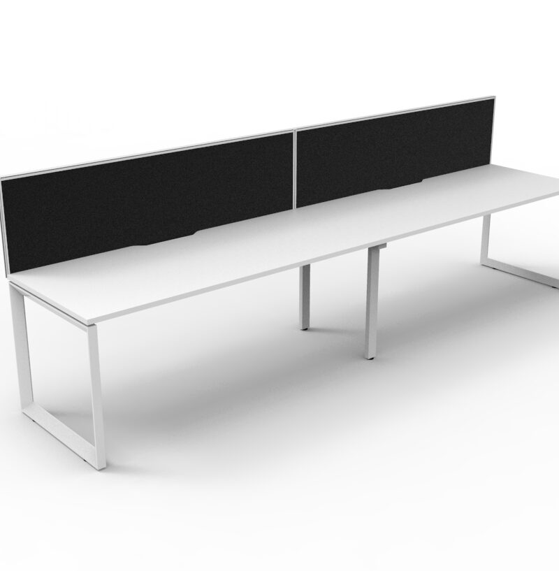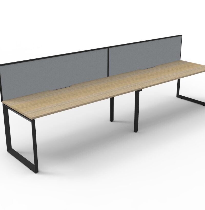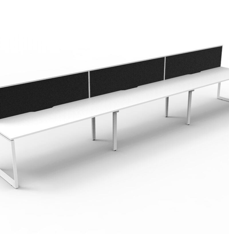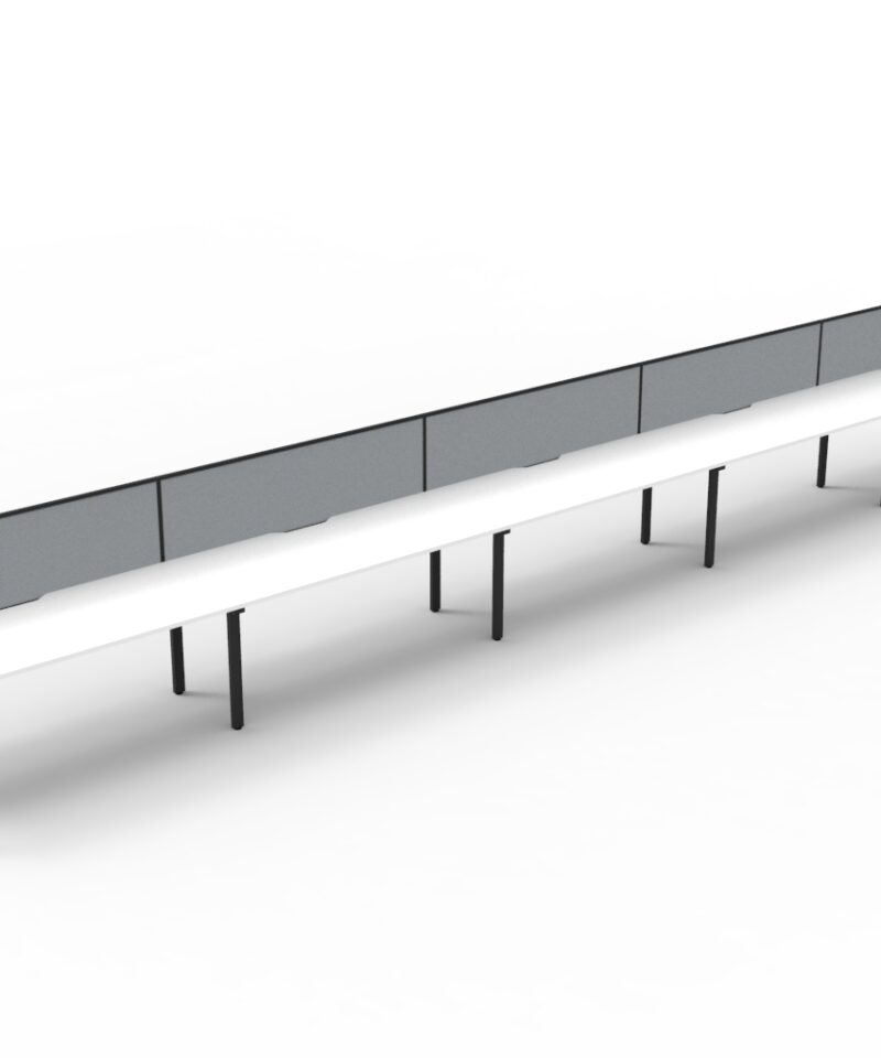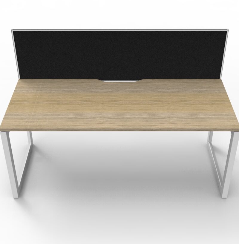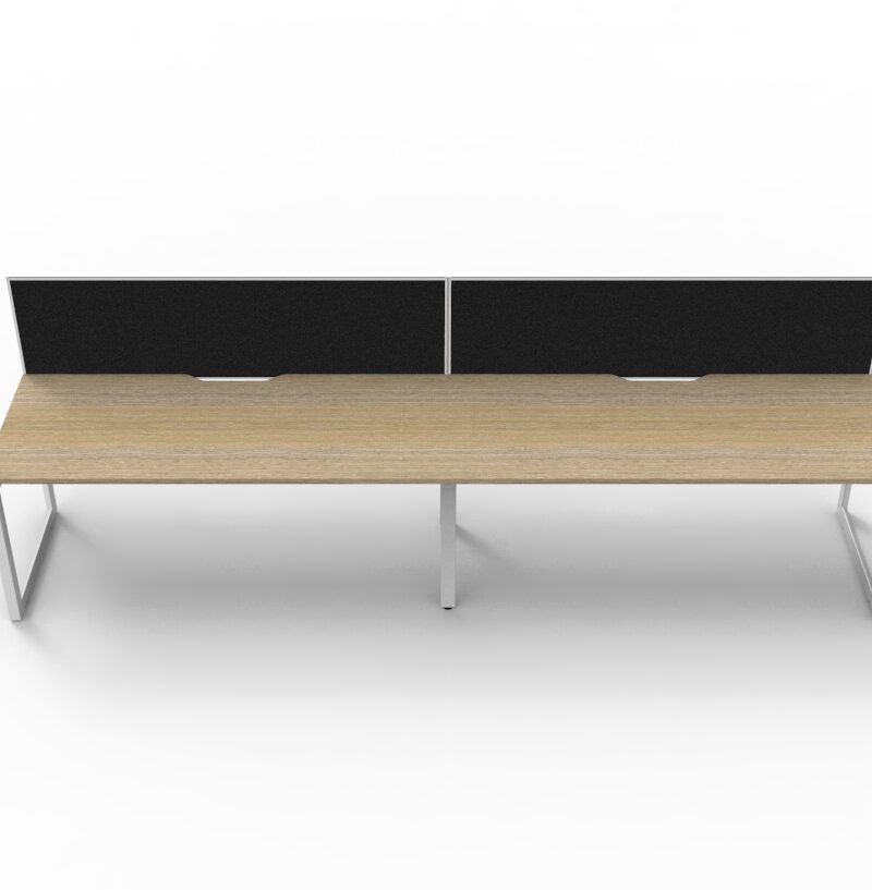 The bevelled edge loop leg finishes each workstation run with a premium look, and the matching dividing screen adds privacy and noise reduction to each workstation.