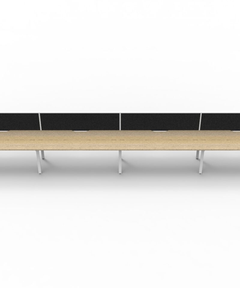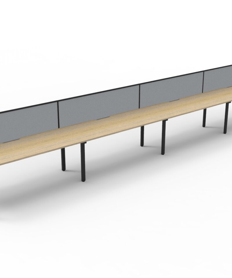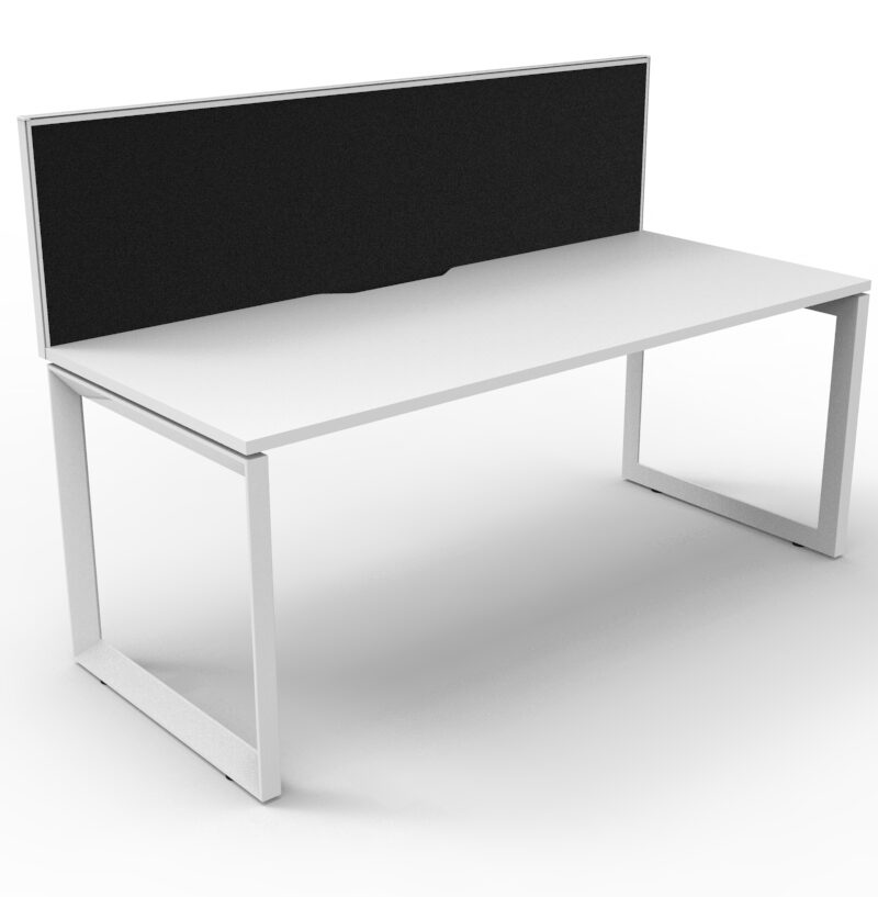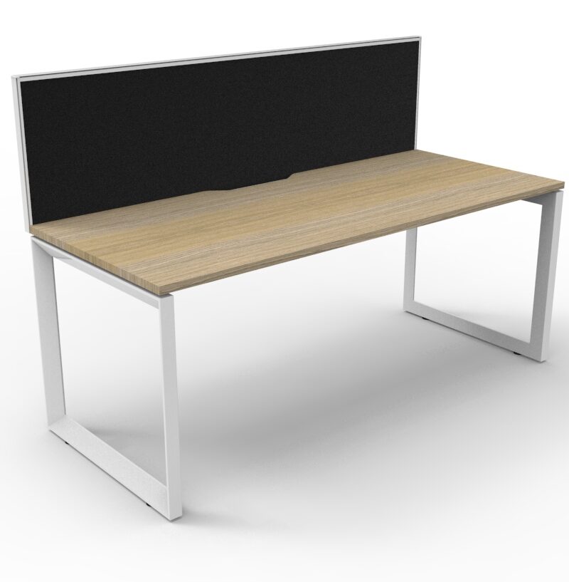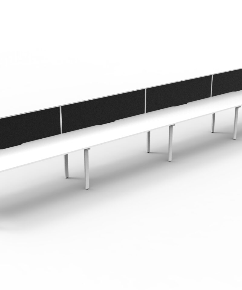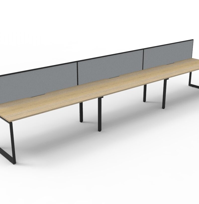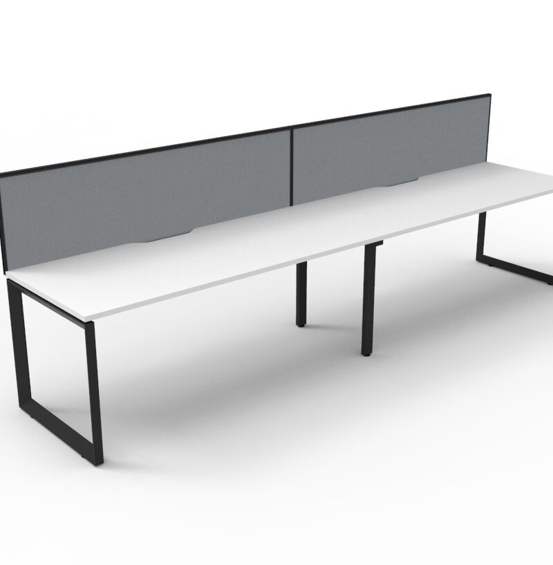 The bevelled edge loop leg finishes each workstation run with a premium look, and the matching dividing screen adds privacy and noise reduction to each workstation.