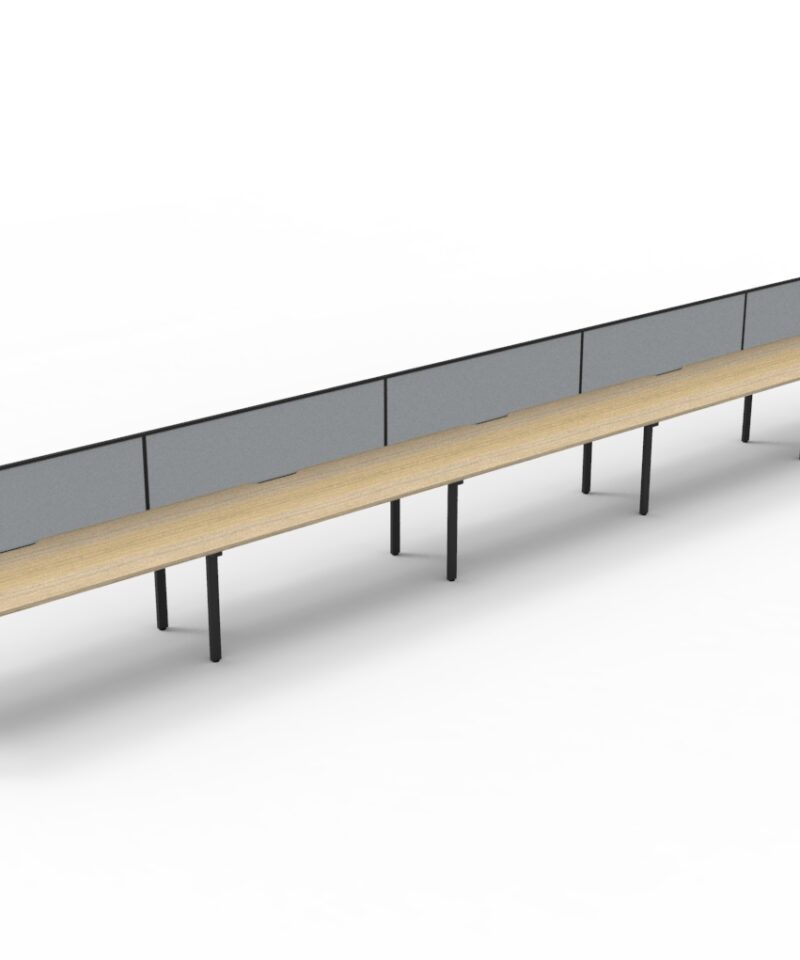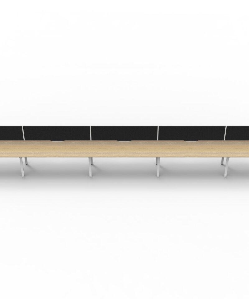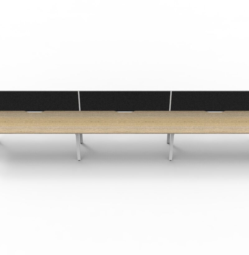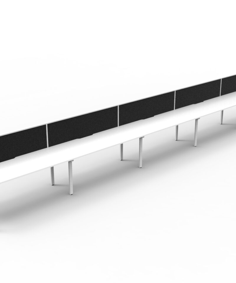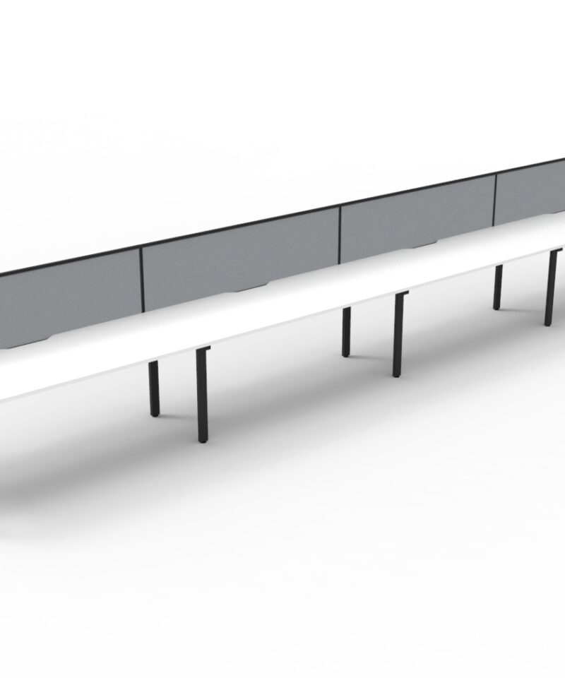 Maximise space and create an efficient working environment with Deluxe Rapid Infinity. 750mm deep Enviroboard tops, with scallop for cable access, and a recessed leg to create full leg access in long runs of workstations.