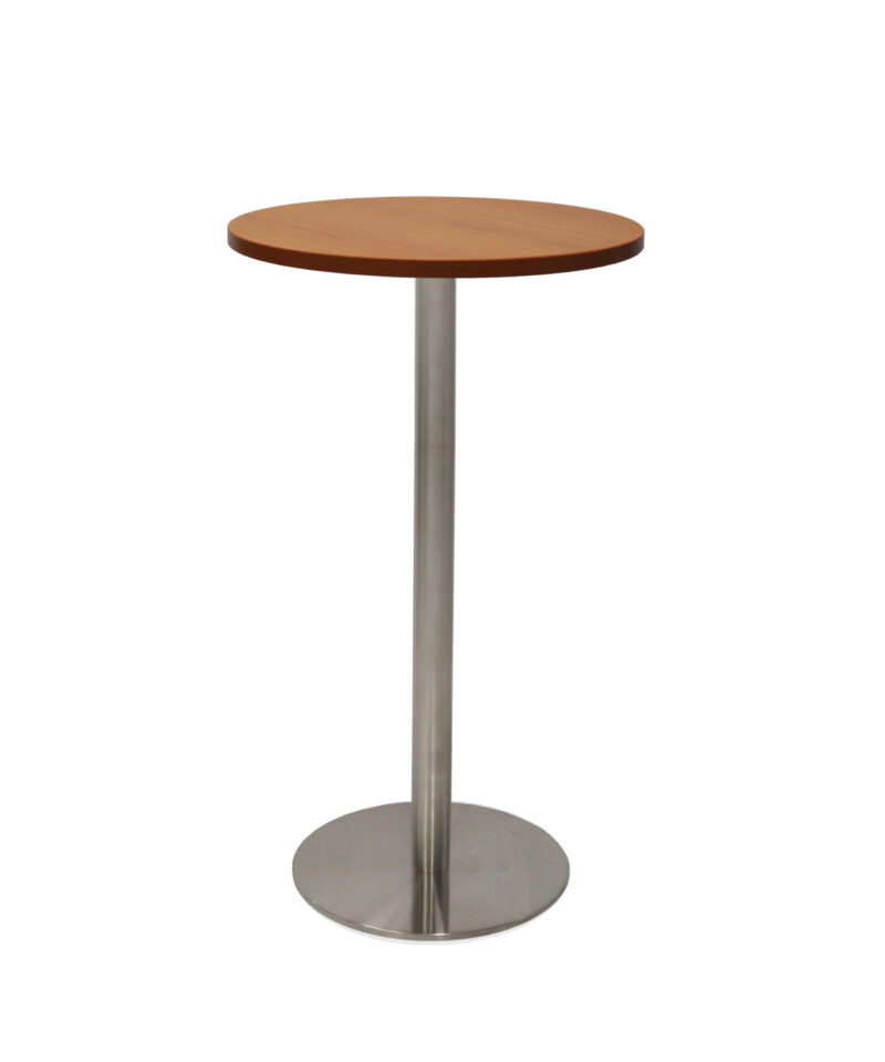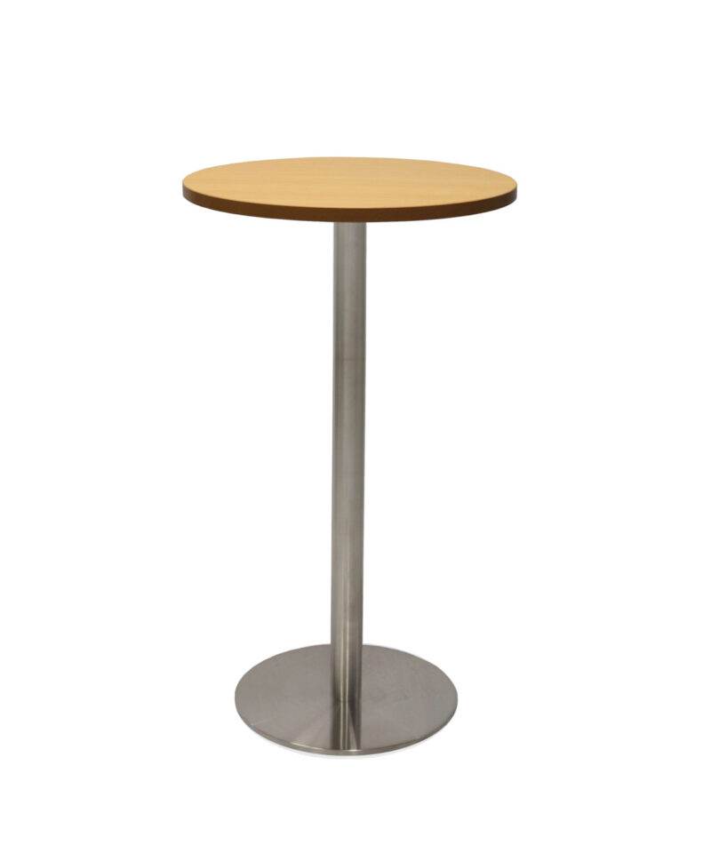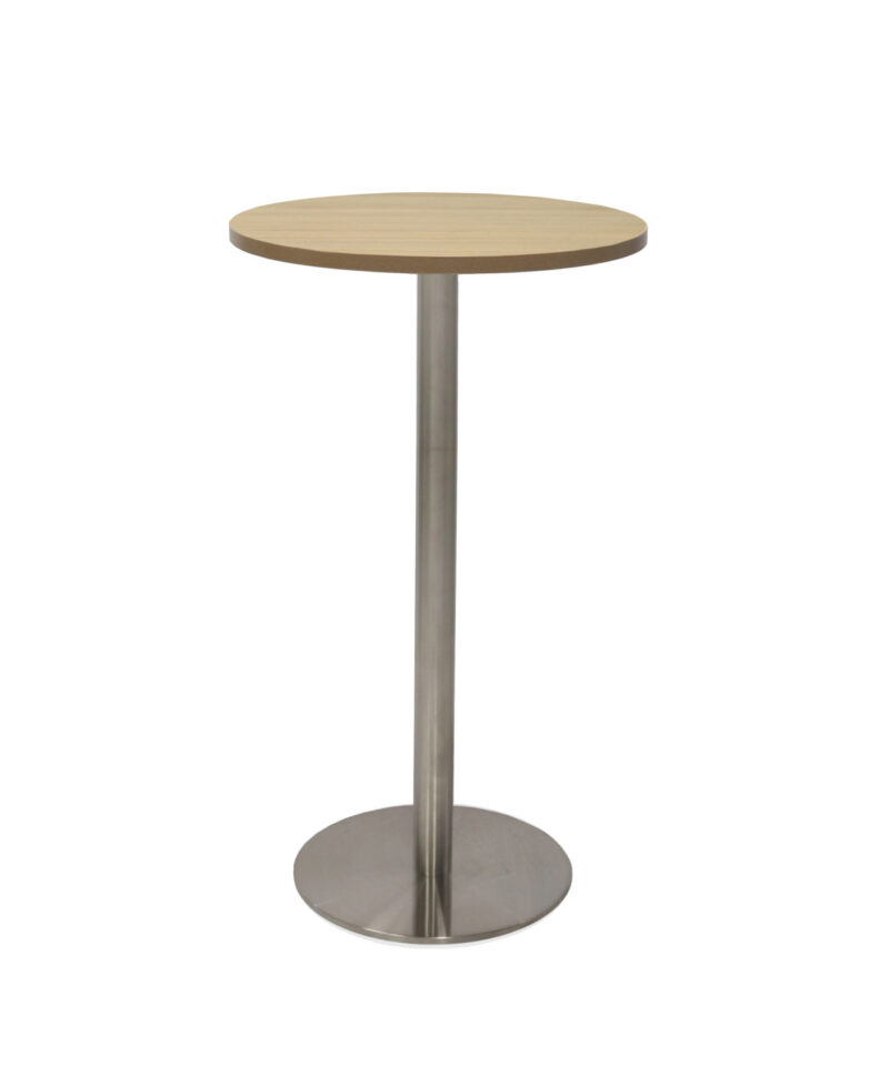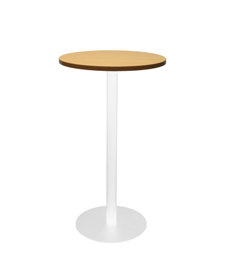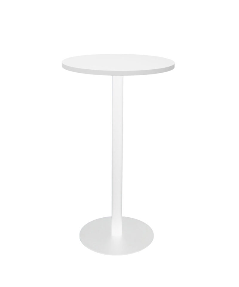 The Rapidline dry bar comes with a flush to the floor disc base in white, black or stainless steel, with a 600mm dimeter top in a range of colours.