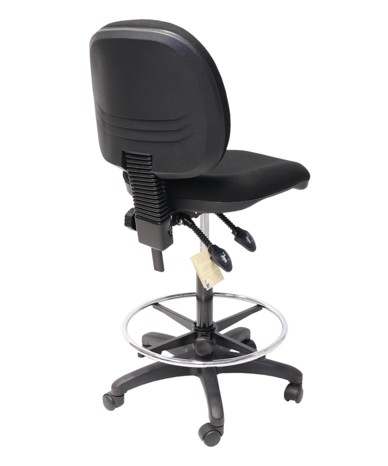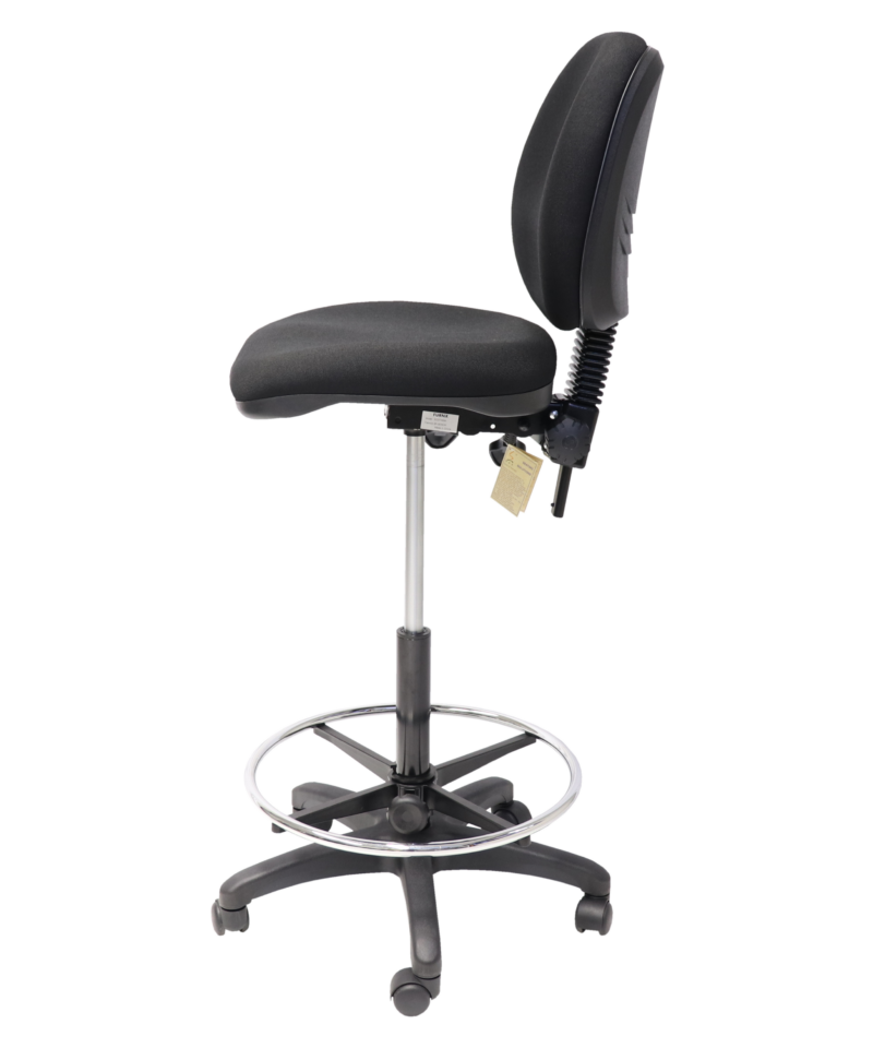 The Rapidline EC070BM Drafting Chair is a commercial grade medium back drafting chair with foot ring and back tilt. This popular office chair is upholstered in quality fabric and backed by a 3 year warranty.