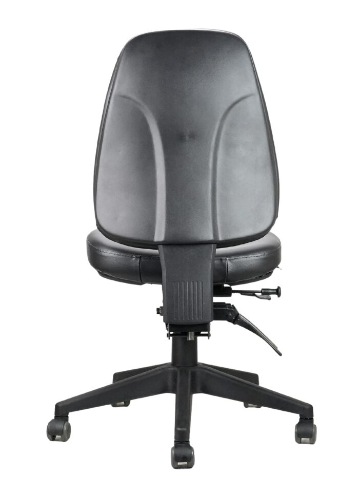 The durable moulded foam seat and triple strip lumbar back support promote comfort for long days in the office.