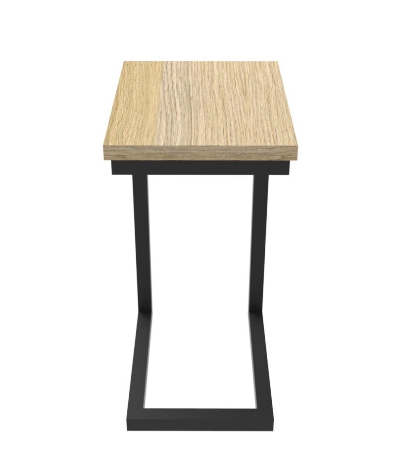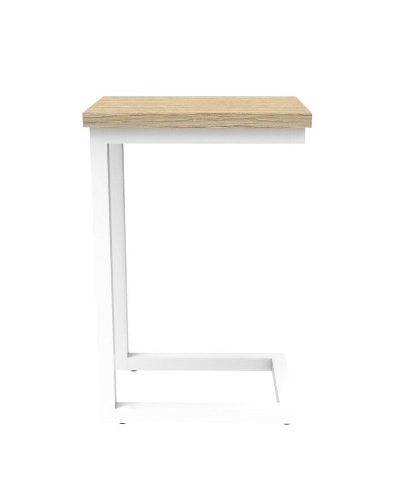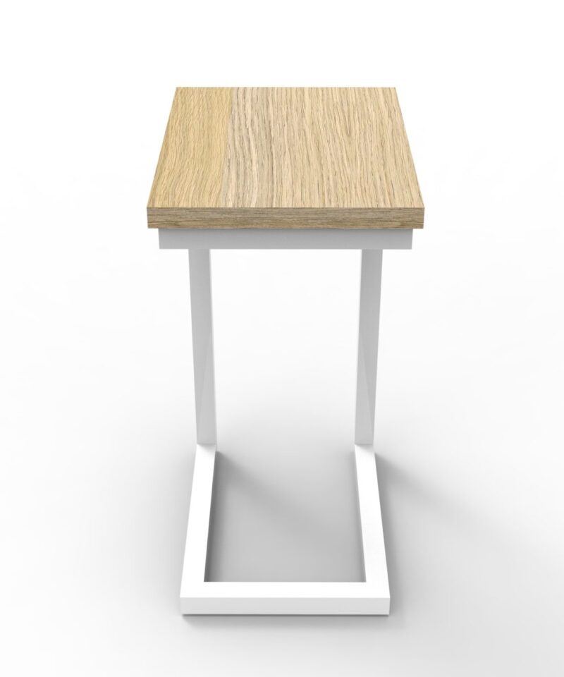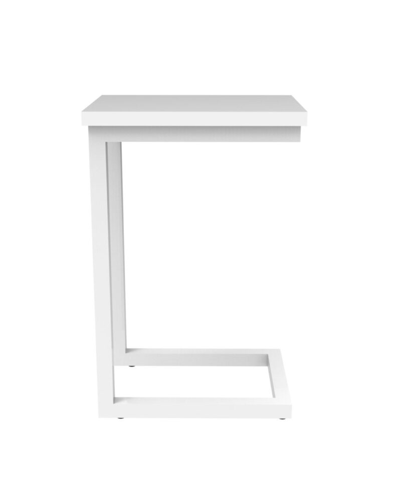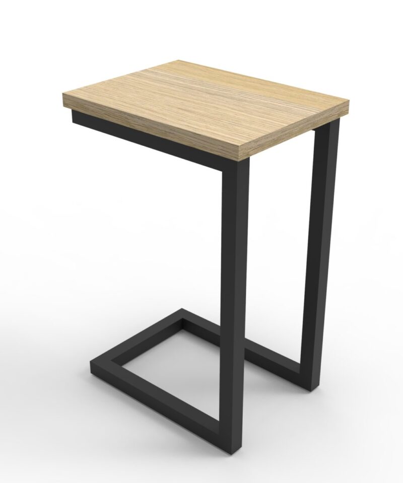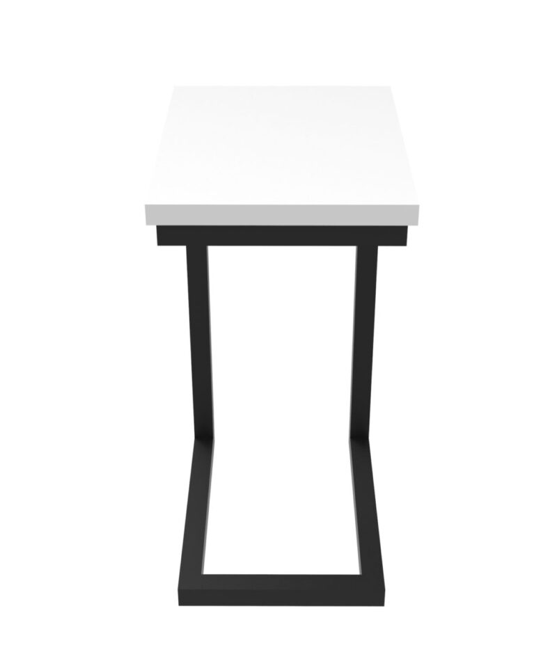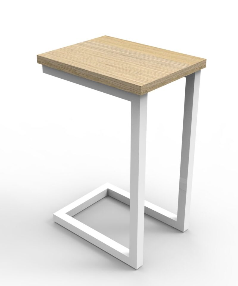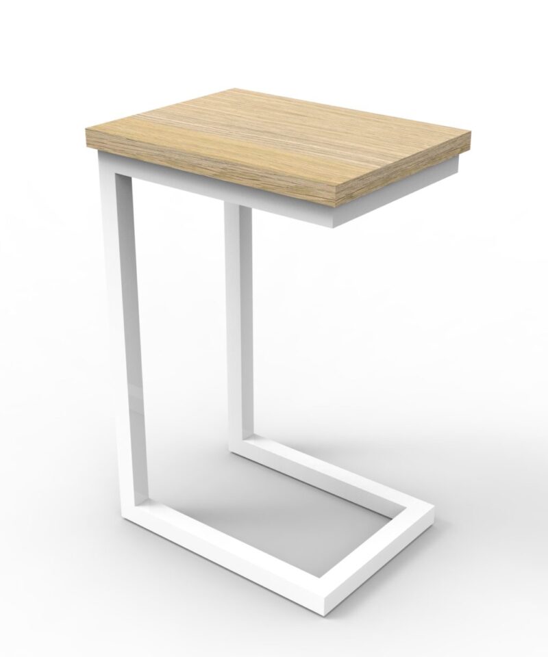 The Eternity side table features a powdercoat cantilever frame in black or white that slides conveniently under lounges or sofas.