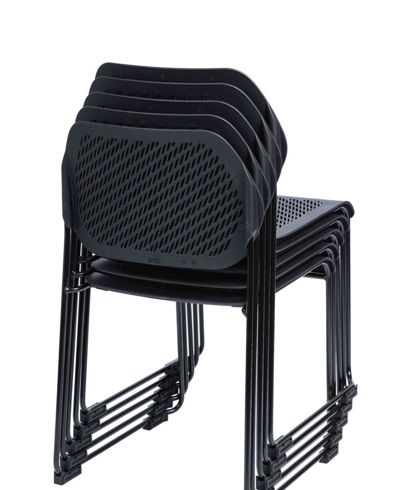 The Rapidline Frame Chair makes the ideal conference or visitor chair. Featuring a black perforated back rest, solid waterfall seat, and robust sled base stackable underframe.