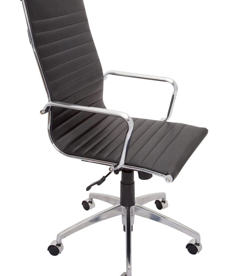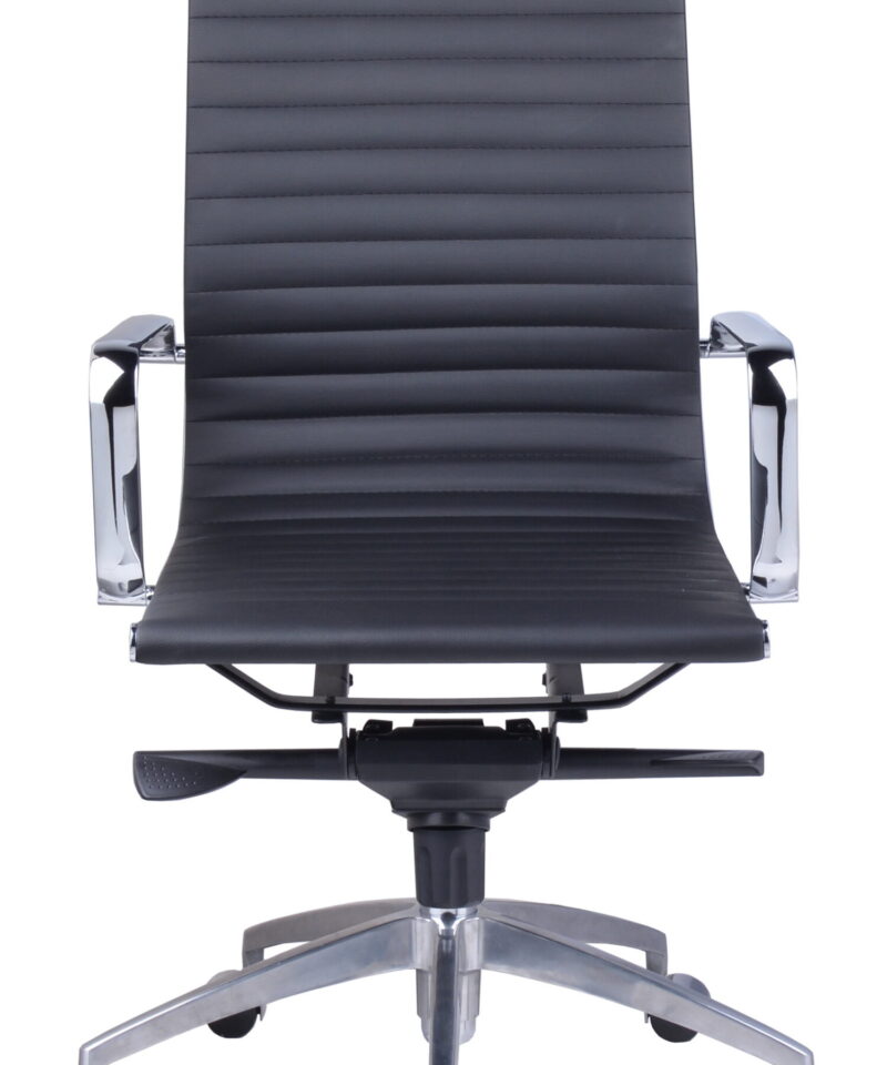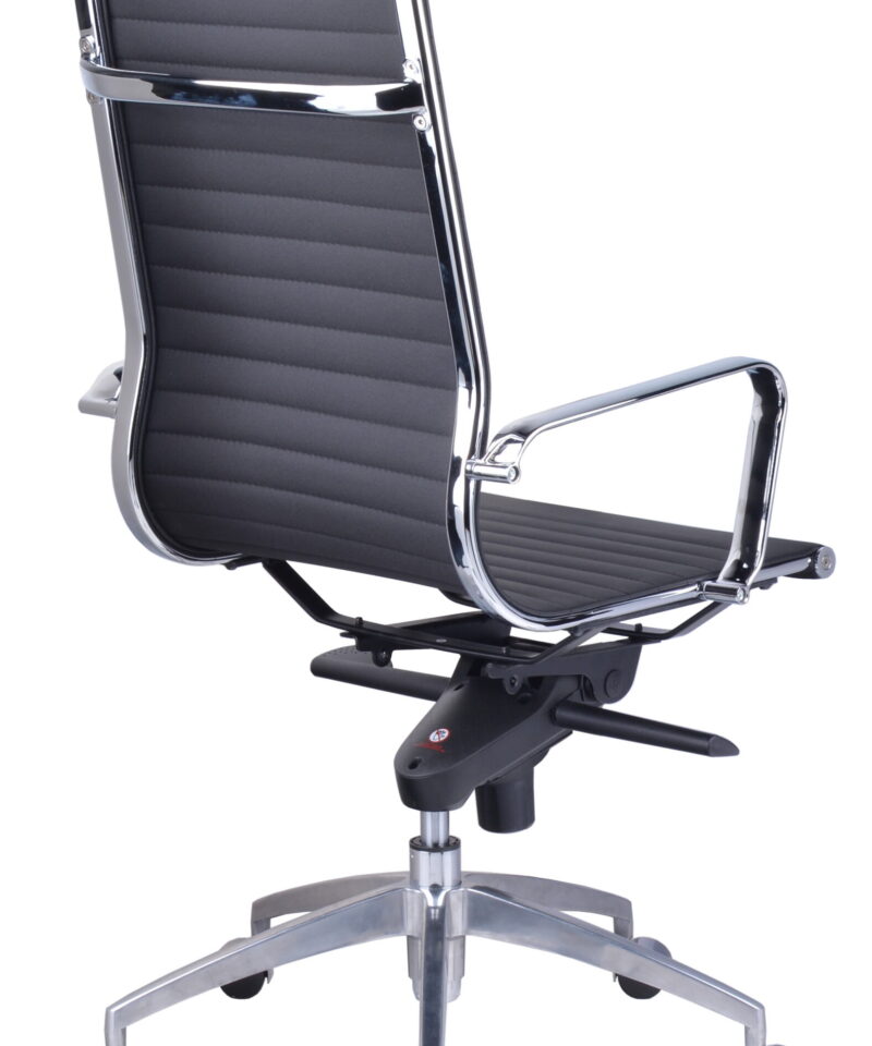The PU605H is a stylish executive or boardroom high back chair, with slimline profile, chrome arms and polished aluminium base.