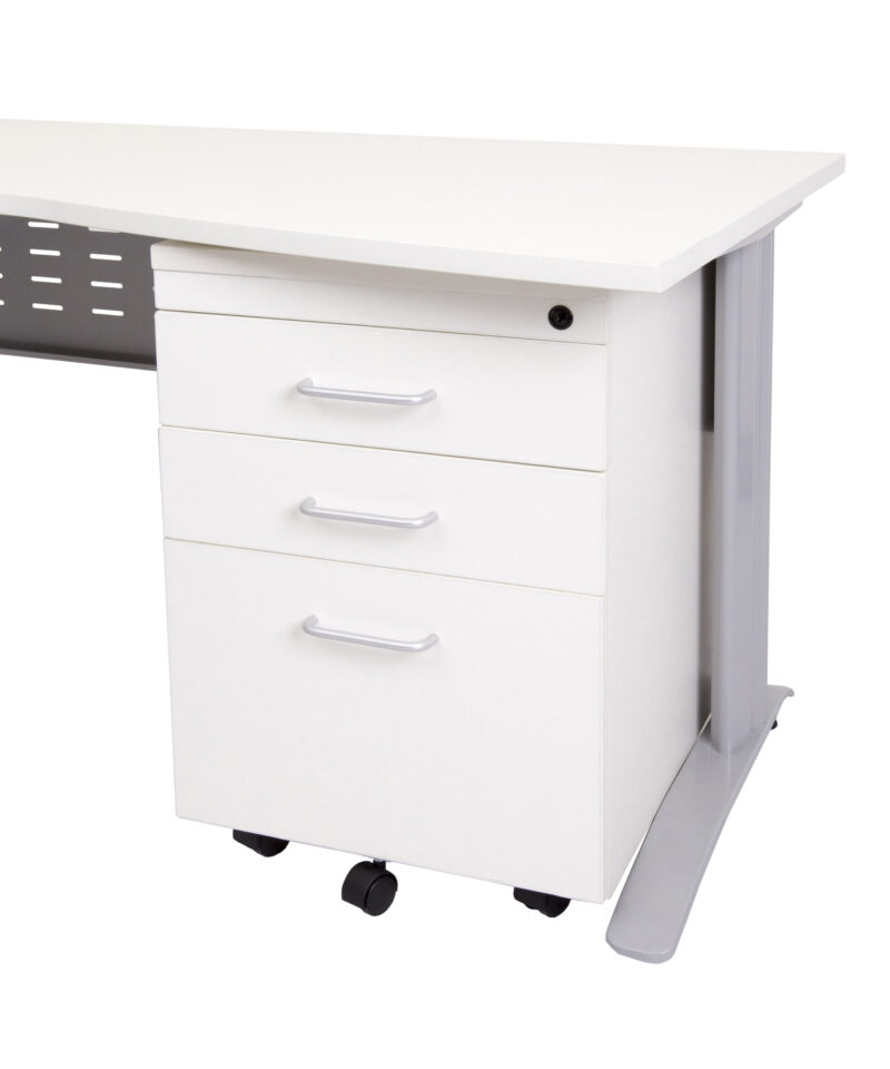 The mobile pedestal comes with castors and a fifth wheel for stability and come standard with a lock.