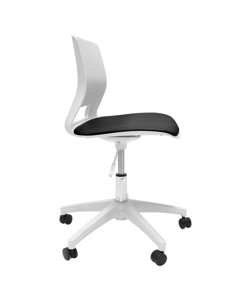 The Viva offers a very modern design to fit commercial or Home office applications. With a white polypropylene shell, black PU seat pad and white nylon 5 star base. Backed by a 5 year warranty
