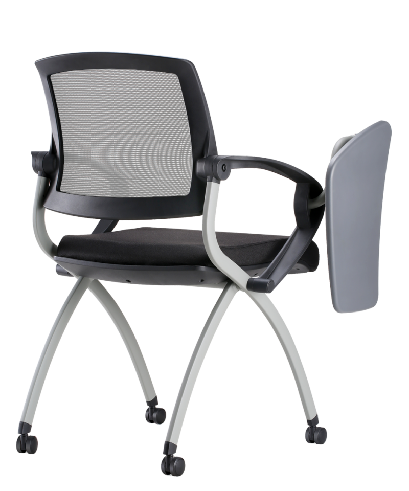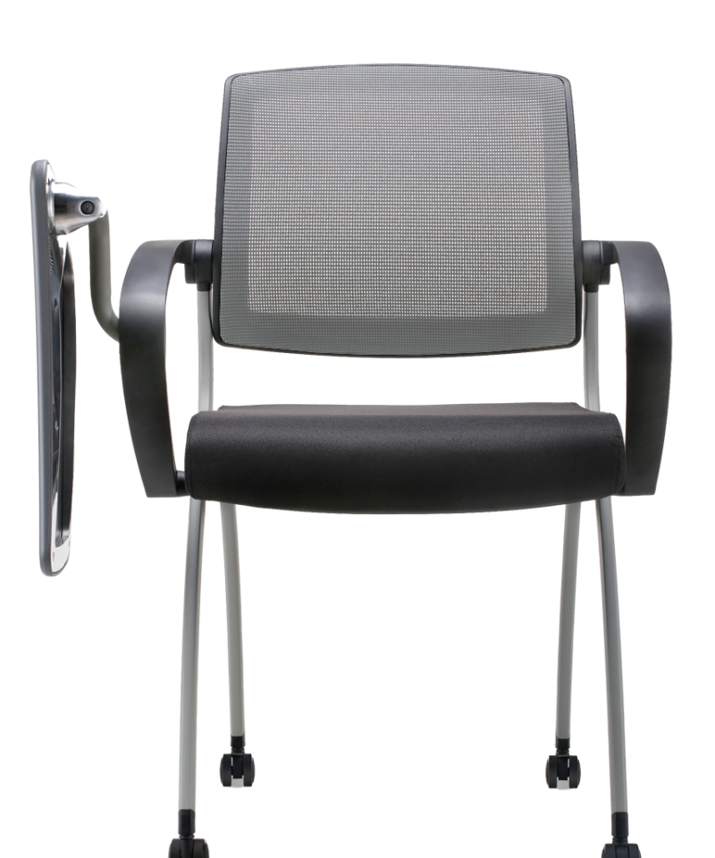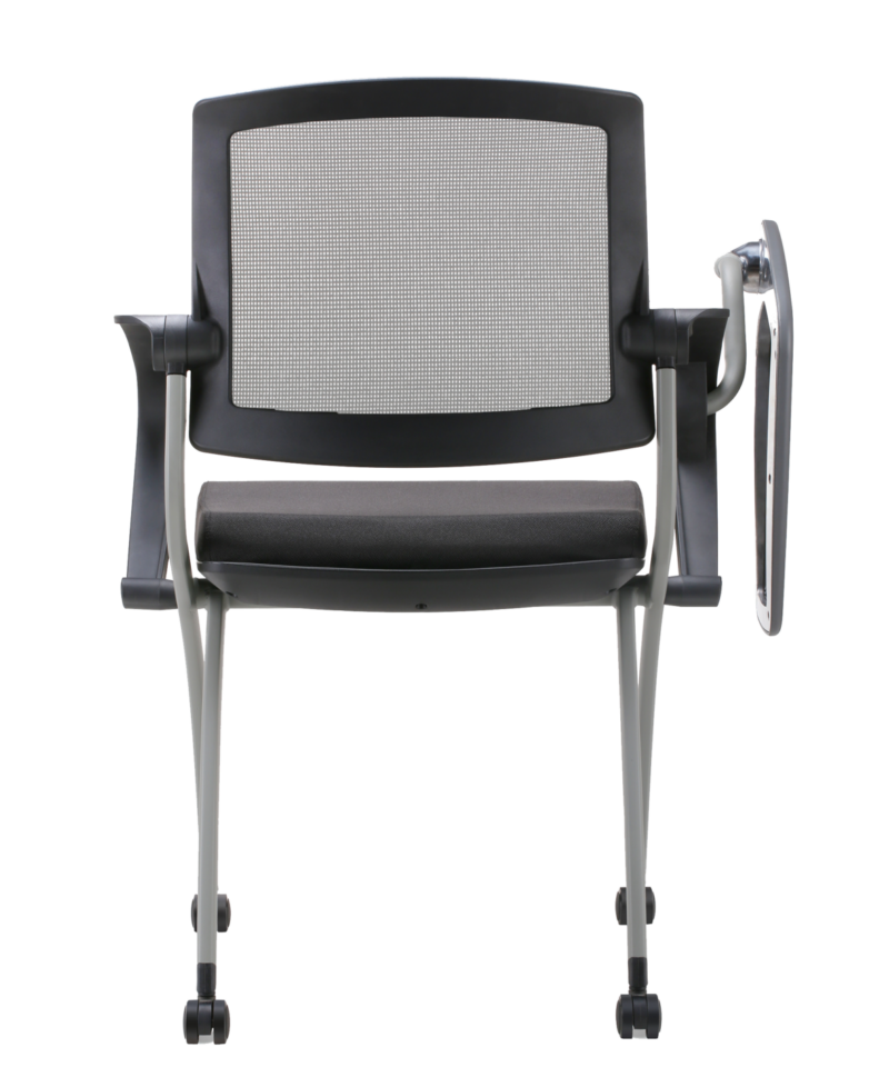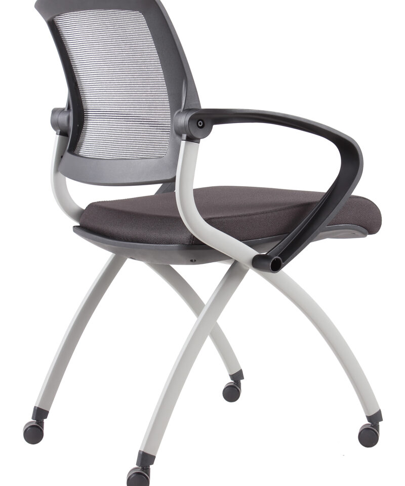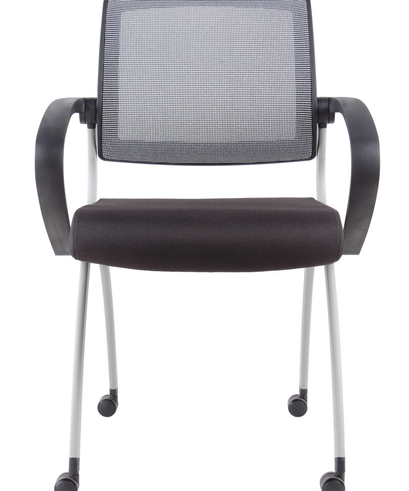 Black Mesh Back Rest with Black Upholstered Seat Pan and Grey Frame