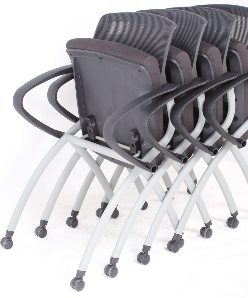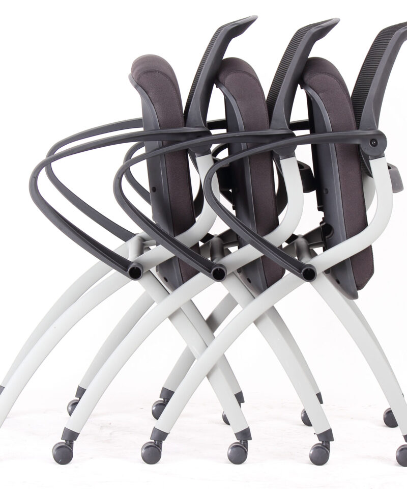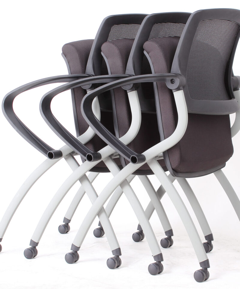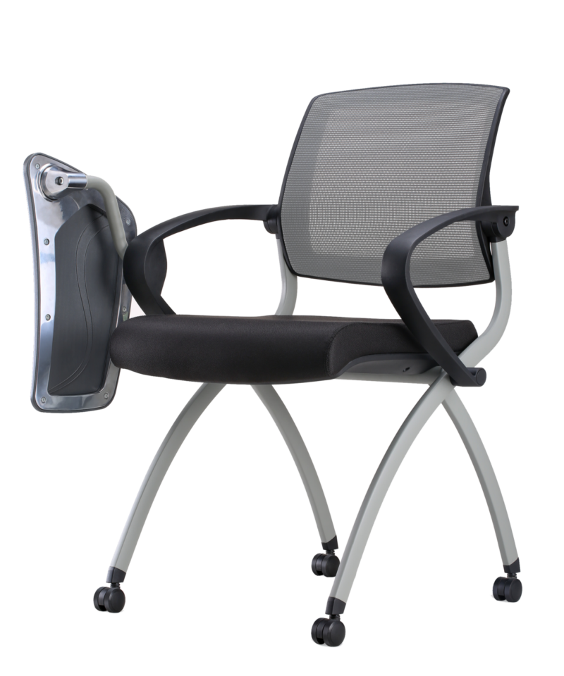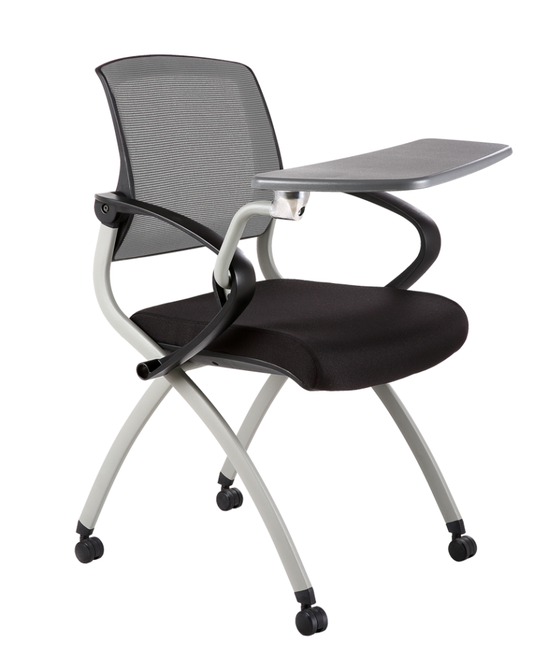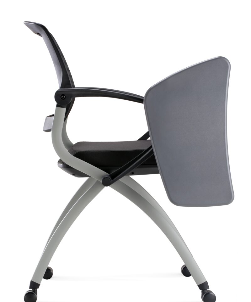 Black Mesh Back Rest with Black Upholstered Seat Pan and Grey Frame